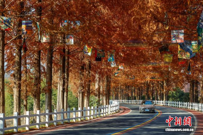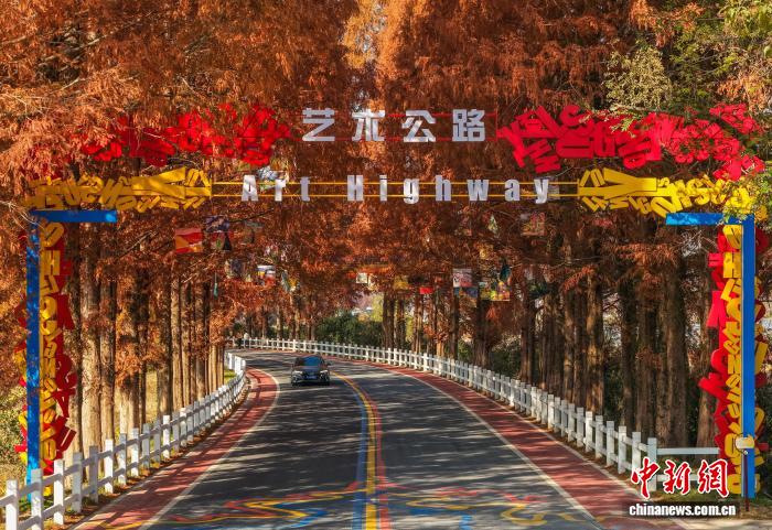 12月6日,安徽省黄山市戚宁县全云山镇的“艺术马路”冬景绚丽,一起成排的白杉树熠熠死辉,1幅幅油绘撰着吊挂期间,人车正在此脱止,类似驶进1条露天的“起伏绘廊”,为乘客带去“车止绘中、人正在景中”的齐新观光领悟。施亚磊 摄